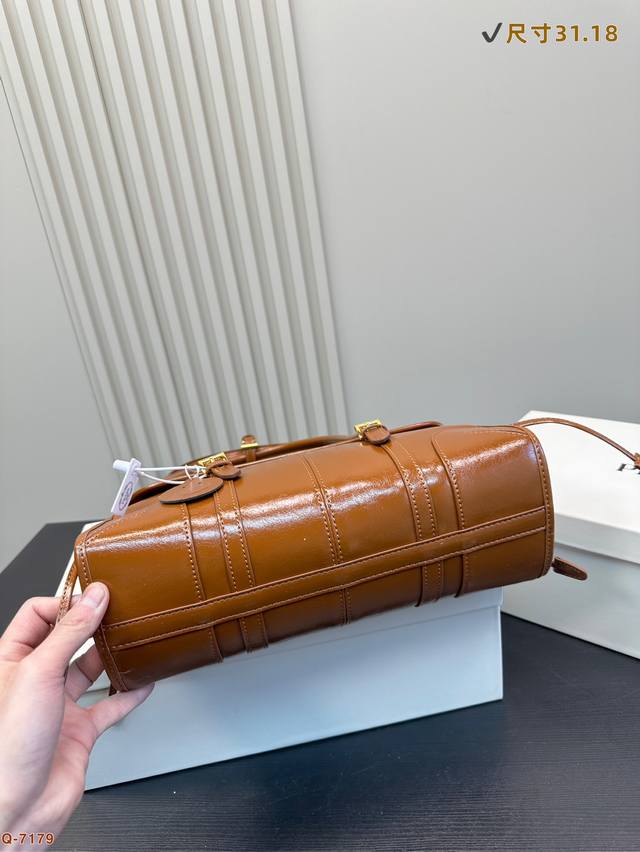 这款皮革手袋采用简洁而精致的设计,油亮的色泽散发业出古典气息。彰显现代休闲态度,长提手方便肩背。背面皮革口袋,珐琅三角形金属,磁扣开合翻盖设计,容量空间非常大。巨巨好用绝对是时商达人们的必备款