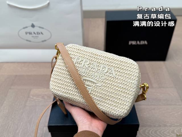 普拉达Prada草编包 满满的设计感 复古中透露着优雅 超级高级的配色 实物绝对惊艳到你 尺寸19 12