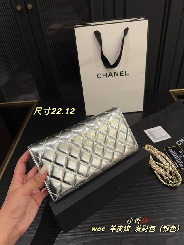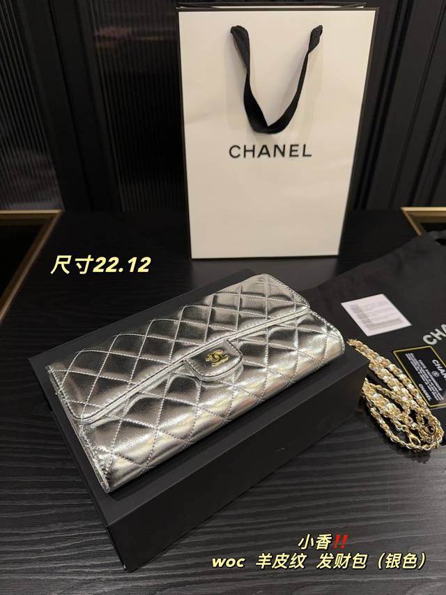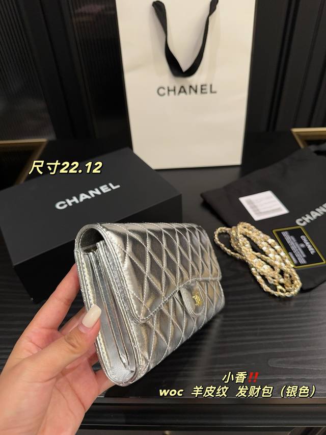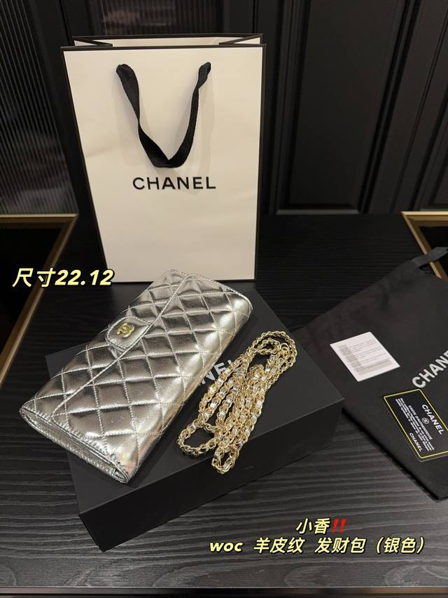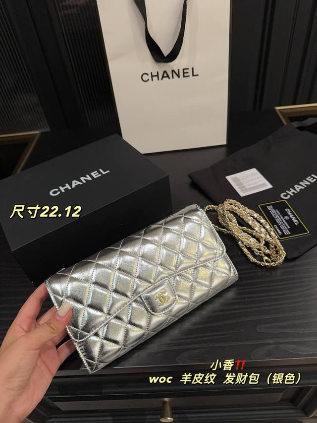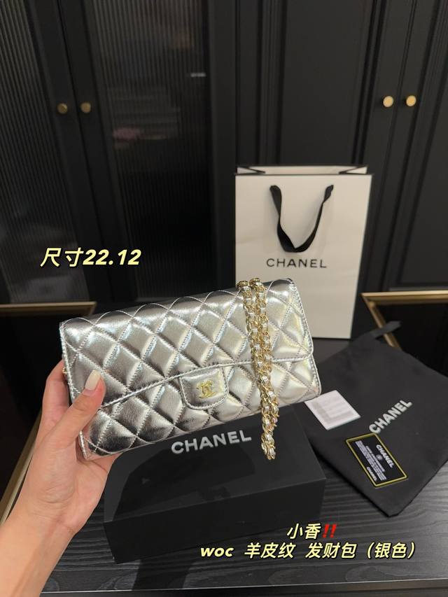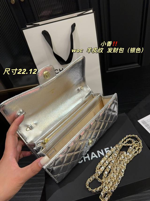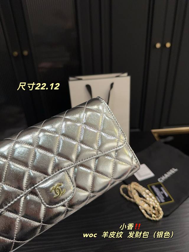 银色 尺寸22.12 香奈儿Chanel Woc羊皮纹 发财包