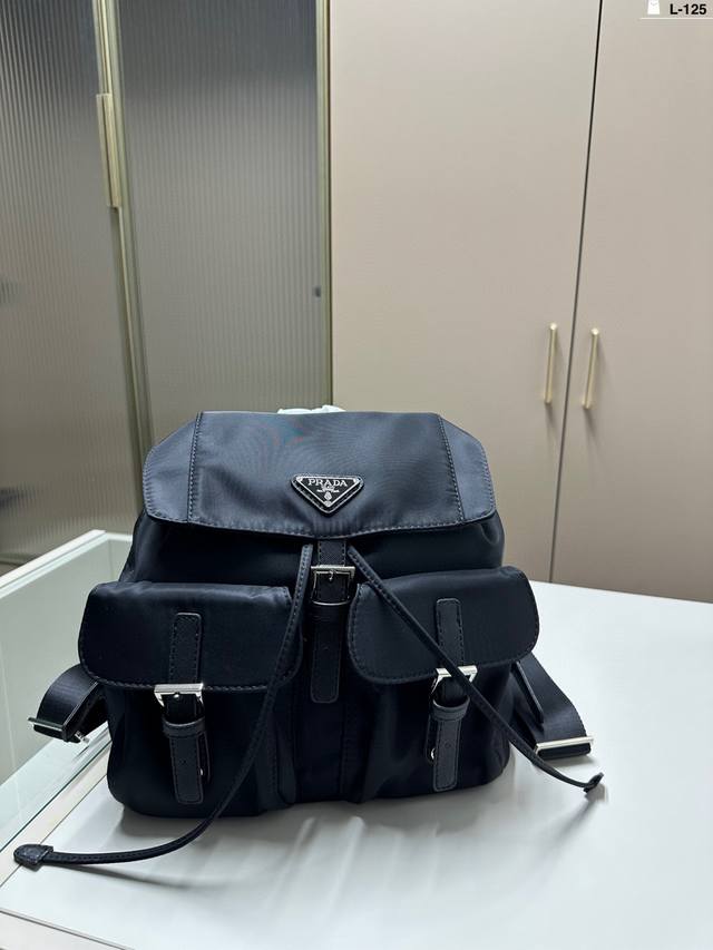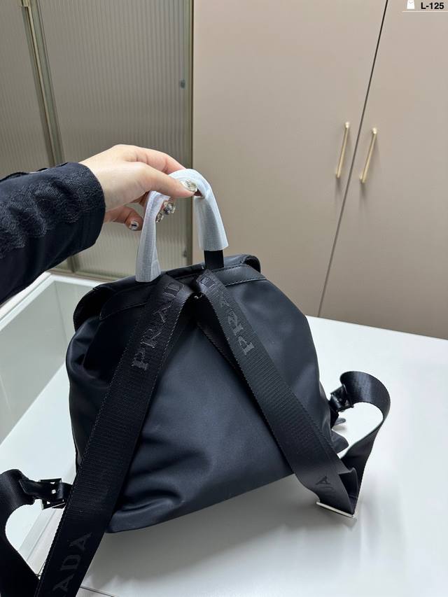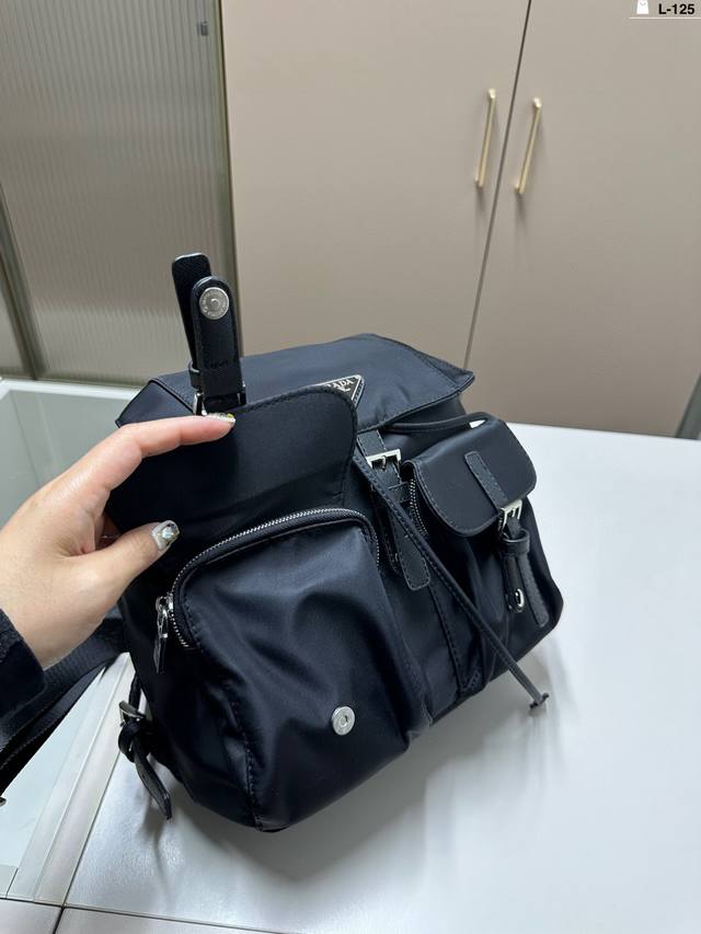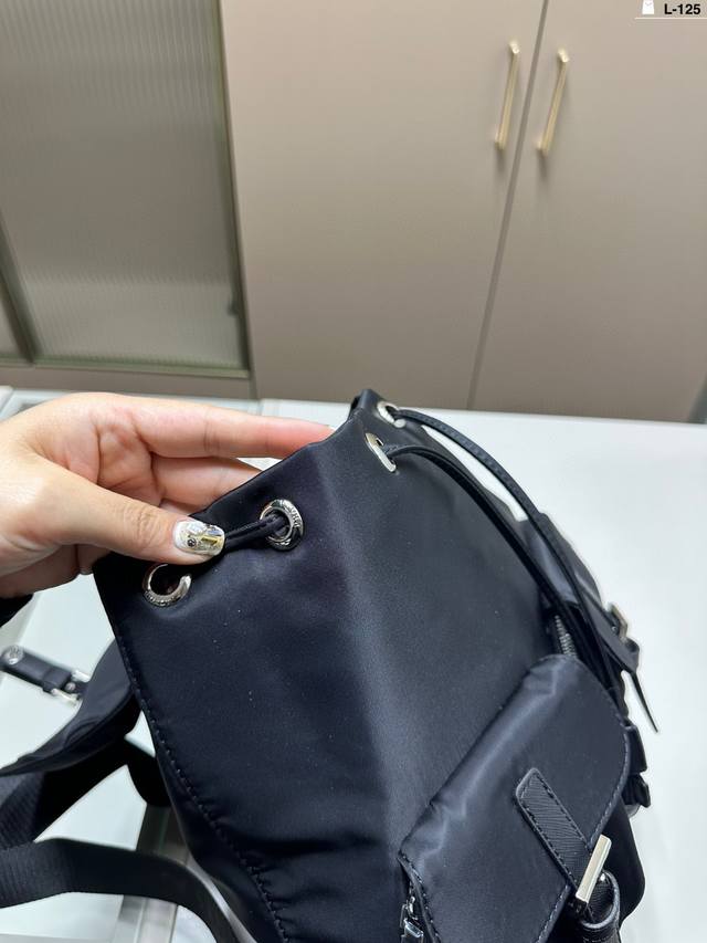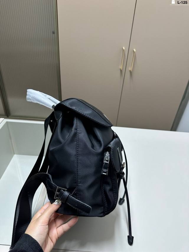 普拉达Prada 双肩包 造型 超实用抽口设计 超可爱 进口降落伞面料男女通吃 L-125尺寸28×26