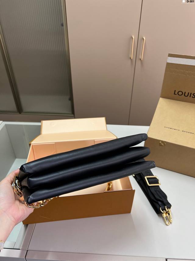 Lv锋芒乍现 抱枕包Coussin 风琴手袋 单肩斜挎包 被拿来用做手包简单大方的款式 真的很炫酷 D-301尺寸27×20折叠盒飞机盒