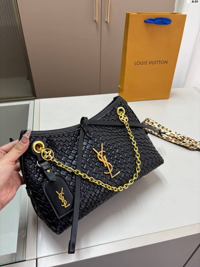 配盒子 圣罗兰编织托特包,简单搭配的包袋,非常大气。搭配衣服也是毫无难度。尺寸:47 44货号6788