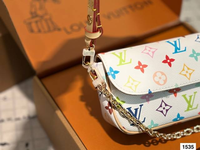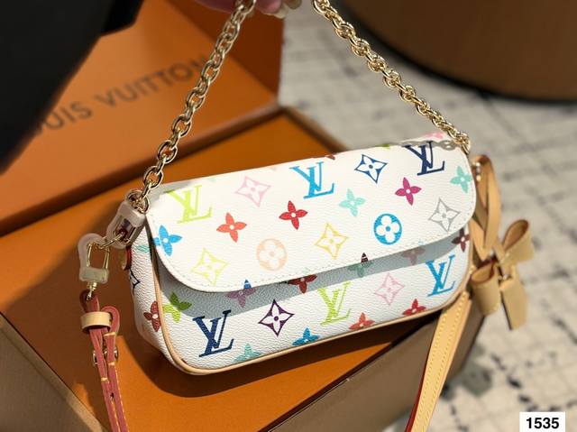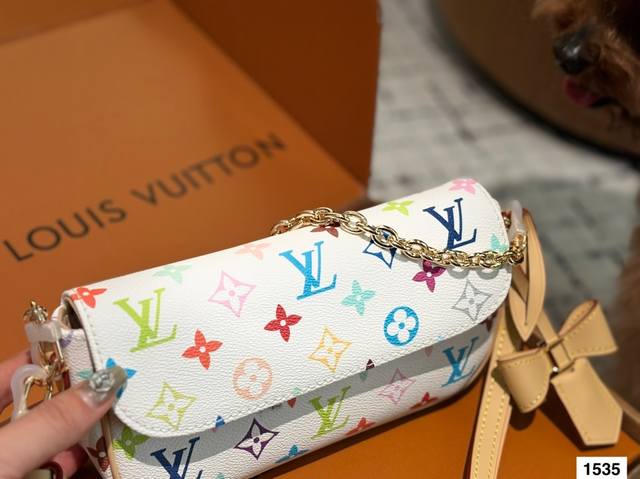 / 原单 白三彩 折叠礼盒飞机盒 新款 Lv 路易威登 Wallet On Chain Ivy腋下包 尺寸22 13Cm