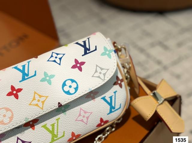 礼盒包装 Size:22*12Cm 25Ss村上隆联名款白三彩 Lv 新晋爆款Ivy Woc 出道即巅峰 双链条设计的麻将包 可斜挎可腋下可手提 内置卡槽...