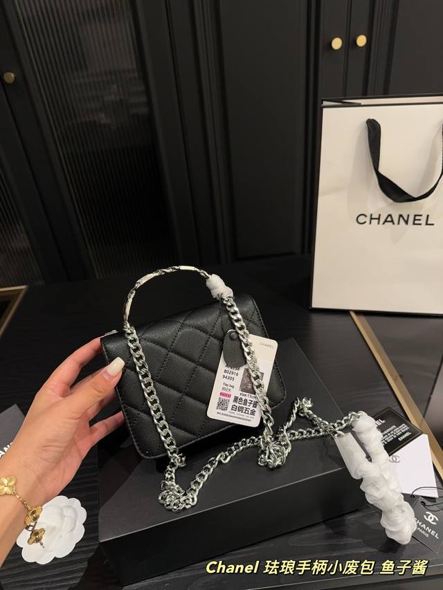 / 折叠盒尺寸15.11 香奈儿Chanel 珐琅手柄小废包 零钱包口红包风琴包 鱼子酱银扣