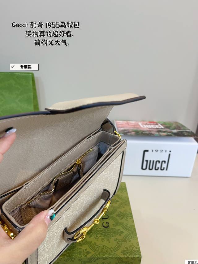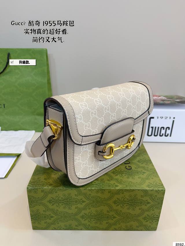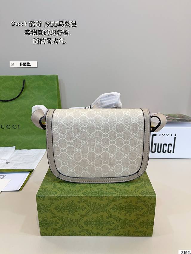 配礼盒. 酷奇Gucci 1955马鞍包 双肩带 休闲风知性风随意切换 真的是怎么背怎么好看,美翻了 质感真的非常棒,瞬间气质提升不少 无论是上班通勤还是周末约