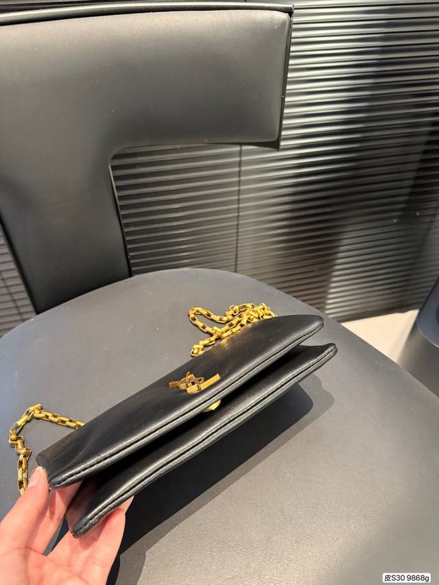 礼盒包装 Ysl Uptown_ 迷你信封包 最经:典的标志性金属Logo,搭配可拆卸链条肩背带,直接当手包意大利进口牛皮,肩带48Cm 尺寸:...