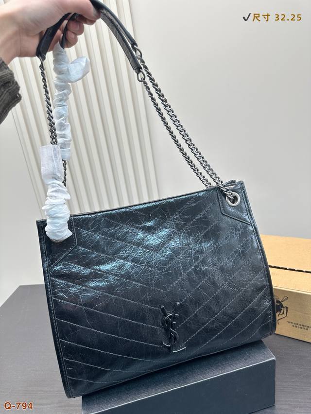 Ysl圣罗兰 Niki Shopping 牛皮 购物袋不要只买常见的Niki啦 Shopping Bag非常可采用经典油蜡皮 超级耐用 磁吸口也非常有安全感哦