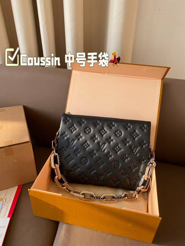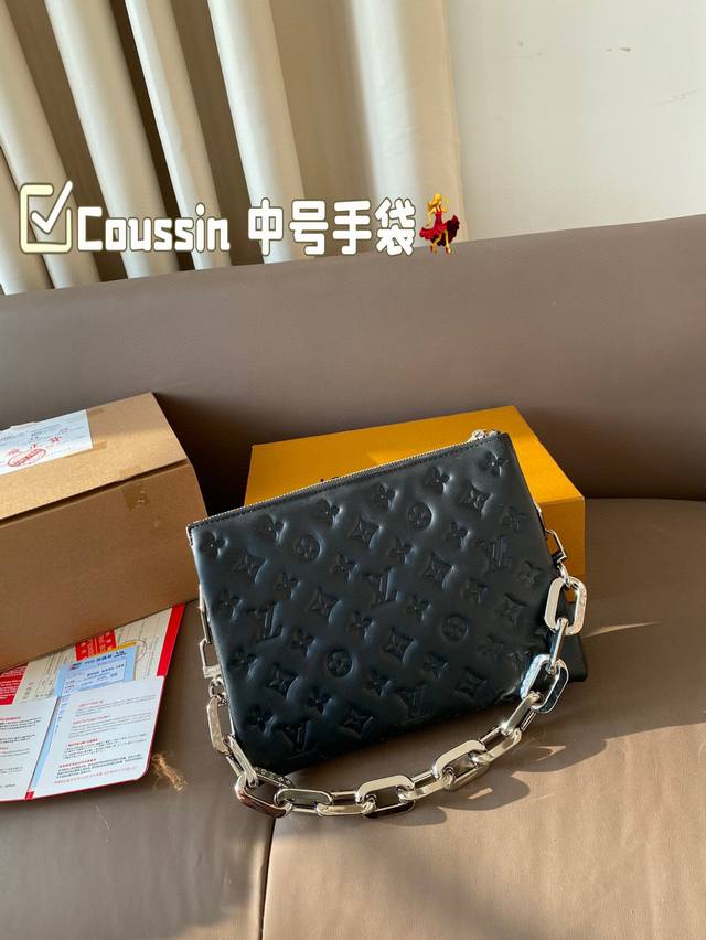 Coussin 中号手袋,采用蓬松羊皮革压印 Monogram 图案,以舒软质感呈现紧凑构型。内隔层增添功能性,昼夜场合皆宜,明星同款必备。粗犷链条和纤细皮革肩带均可拆卸,带来多种造型选择。