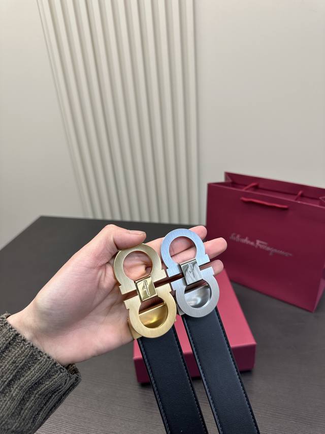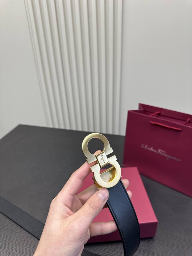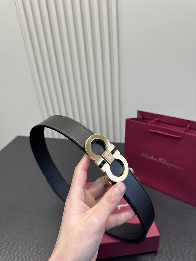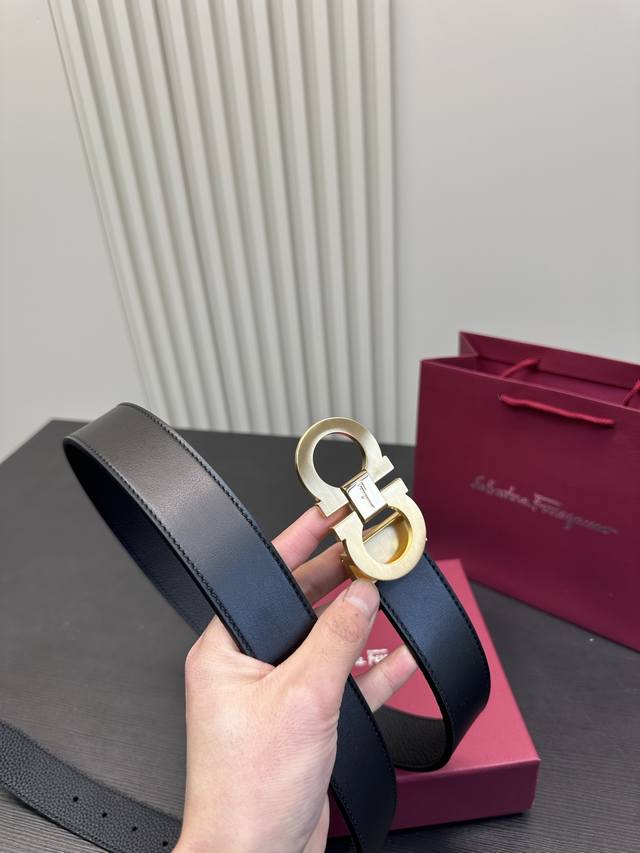 Ferragamo.菲拉格慕 全套包装 宽度3.5Cm 高级定制款男士皮带 双面进口牛皮 可双面使用 自行选择搭配 真材实料 很有质感...