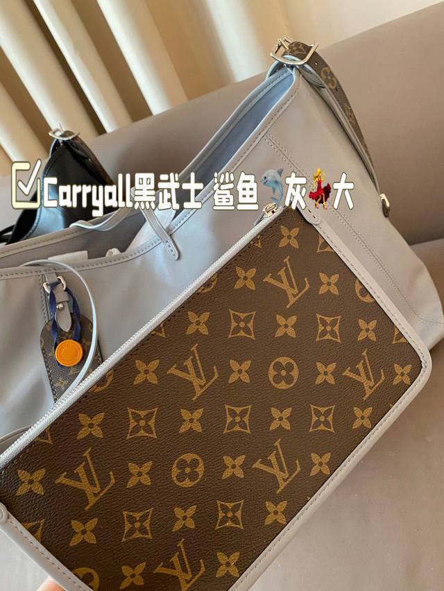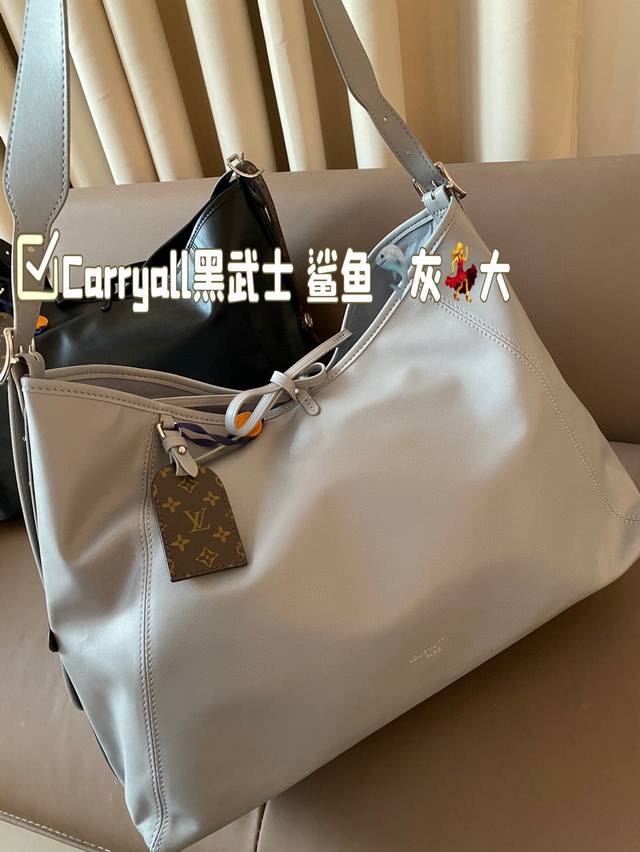 大号 又爱上了Carryall出的新色黑武士鲨鱼灰 Lv黑武士 经典Carryall 包型柔软的绵羊皮材质让包包更加慵懒时髦,小号的金属链条更是酷到没朋友 适配