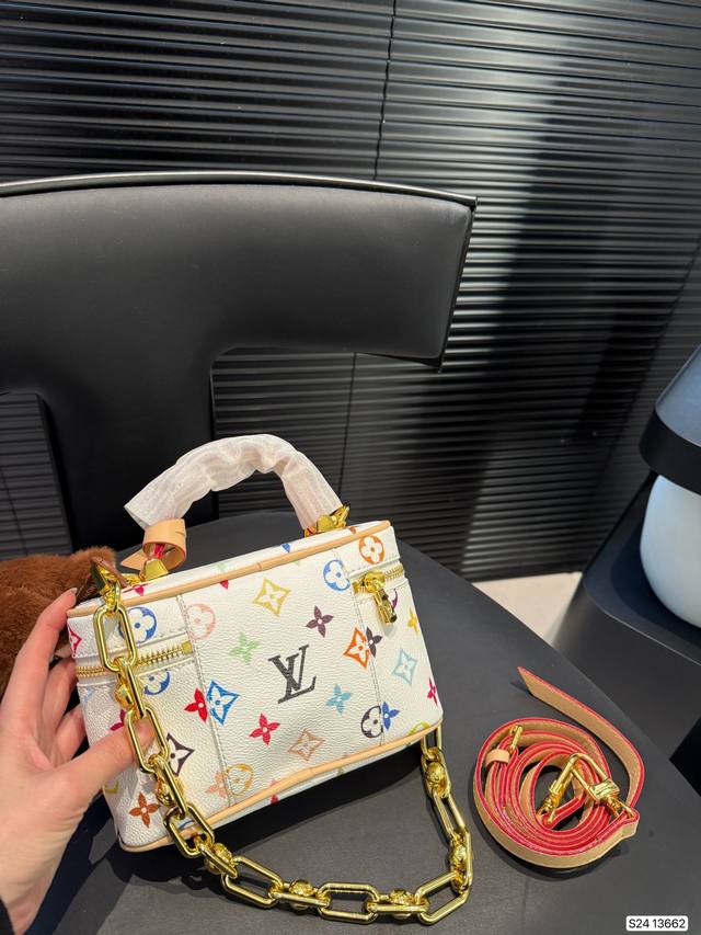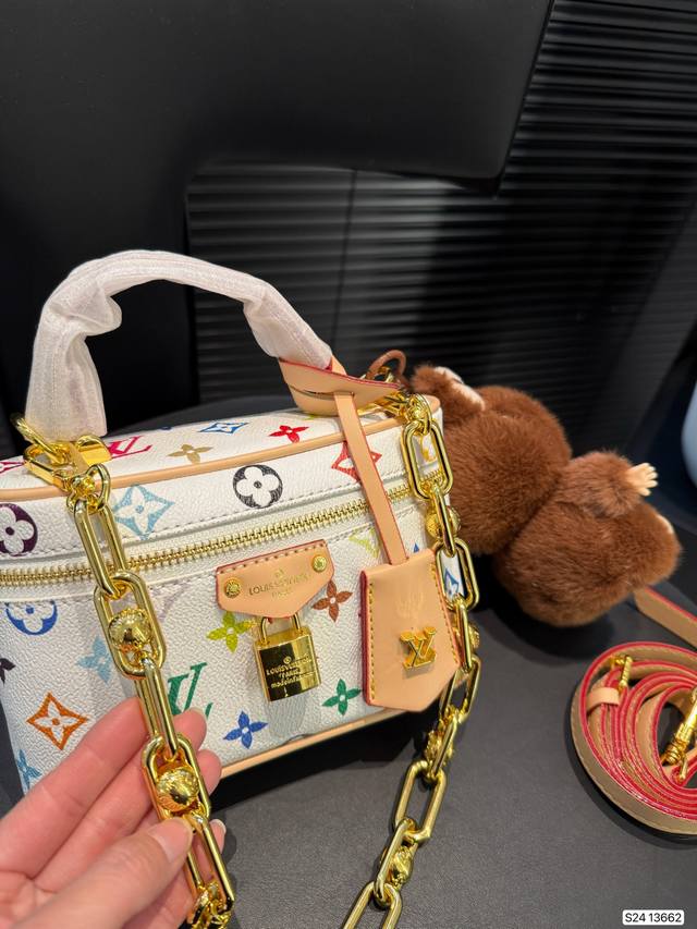 Lv化妆包 Lv尤物人间白三彩真漂亮啊白三彩系列每一只都值得收藏,又可以搭配俏皮可爱下次想试试洒脱一点穿搭彩色老花 五彩缤纷的少女心满出来这只包适配乐开了花的心