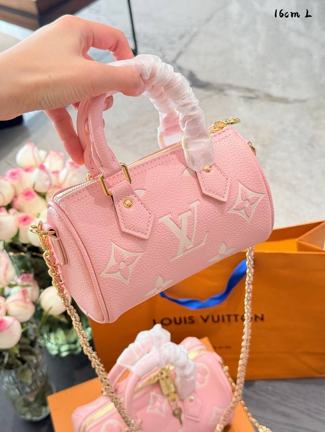 Speedynano~小巧之中透露出无与伦比的高级感~纯黑色的包面与Lv白色大印花完美结合,为这款包包赋予了独特的貌美特质,仿佛夜空中最亮的星辰,小巧迷你的尺寸让人一眼就爱上,既可爱又富有气质,完美适合各.种场合,无论是高贵的晚宴还是日常的休闲时光小巧的手提与细肩带的搭配,无疑增添了更多的灵活性 和实用性~ #Lv #路易威登#.16Cm