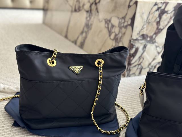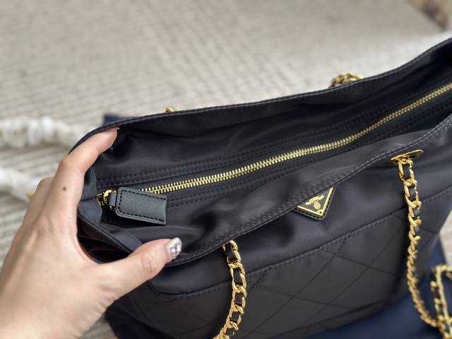 无盒 Size:30*25Cm Prad 中古包 尼龙链条包 很复古!很有味道! 极简又高级的链条包 超美博主同款!又酷又飒!