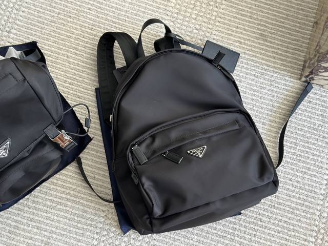 升级版 无盒 Size:40 28Cm Prad 尼龙双肩包 说到双肩包不得不推荐这款包包的设计太有想象了! 方便无需不在哦. 是一款实用的双肩包!!! 轻度防