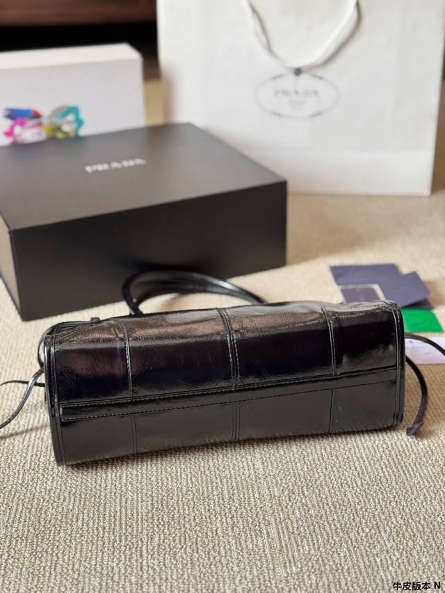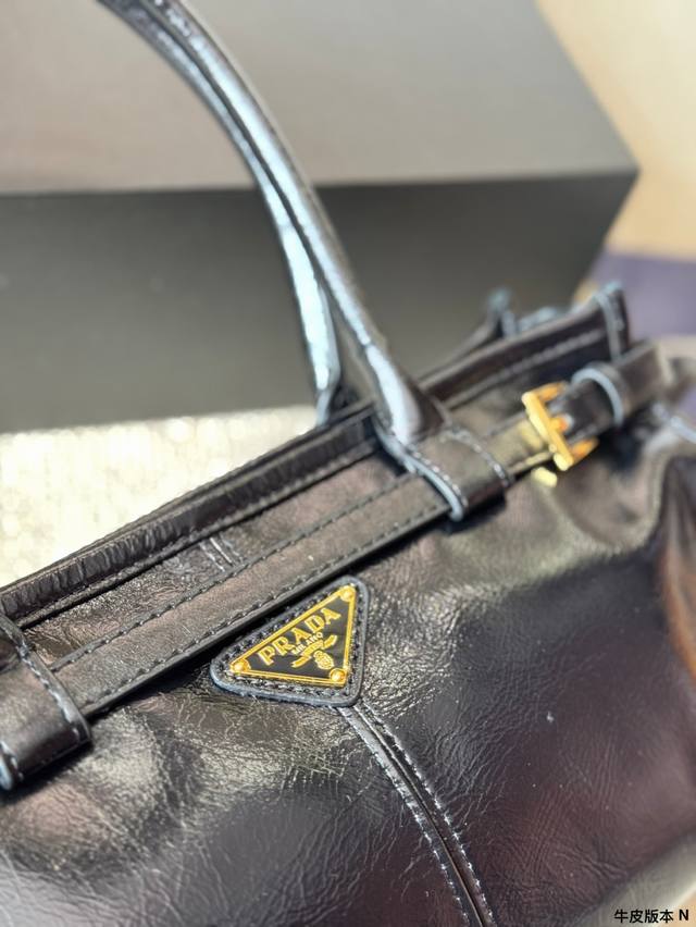 纯牛皮 Iprada Lux Soft Bag黑金油蜡手提 Prada Lux Soft Bag 黑金油錯手提 可以单肩可以斜挎,质感细节满满,出行一包搞定!相