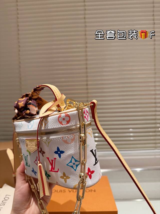 配折叠盒子 Lv购物袋 Lv路易威登女士单肩包村上隆联名Monogram花限量新枕头包尺寸:32 29