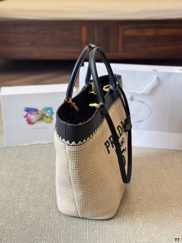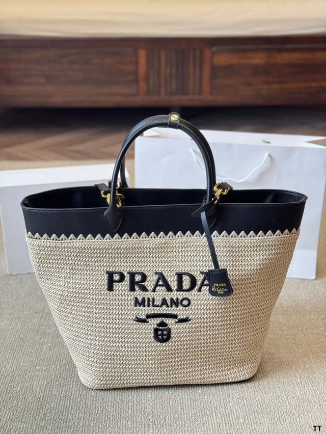 Prada绝美草编包 是背 Prada 阳光草编包的夏天啦 马上夏至了,来推荐这只 Prada阳光草编包 编织和皮革,清爽也文艺,让你也可甜可美。设计也非常实用