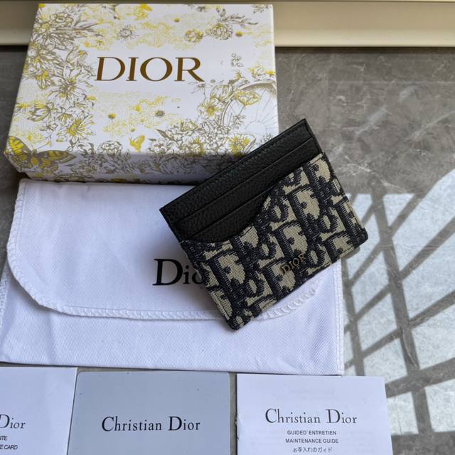 170马鞍卡夹黑色粒面牛皮革搭配米色和黑色Oblique 印花面料。编号:2Adch164Yks_H05E_Tu 尺寸:10×8 长×高 二零二三秋季全新推出的马鞍卡夹是一款高雅的配饰,彰显Dior的精湛工艺。采用黑色粒面牛皮革精心制作,饰以米色和黑色 Oblique 印花面料细节,突显马鞍系列的经典廓形,两侧分别设有三个卡槽,顶部设有一个卡槽,可收纳各种个人物品。款式优雅,正面饰以金属覆层黄铜Dior标志,可轻松放入各式口袋中。