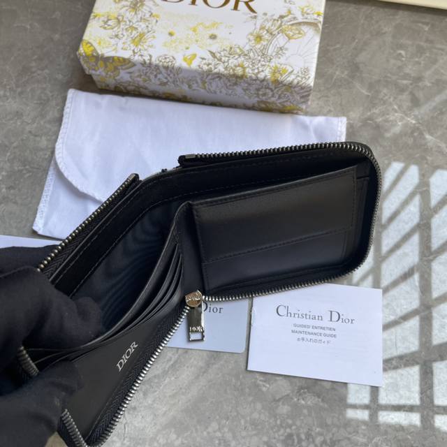 编号:2Esbc092Yse_H05E_Tu尺寸:11×9厘米 长×高 这款精巧的拉链式钱包彰显现代风范与优雅气质。外部和内部分别采用米色和黑色 Oblique 印花面料和黑色牛皮革精心制作,彰显 Dior别致的精湛工艺。内部设有三个卡槽、一个现金隔层、两个竖版隔层和一个按扣硬币口袋。双折款式,可轻松放入口袋或手袋中。