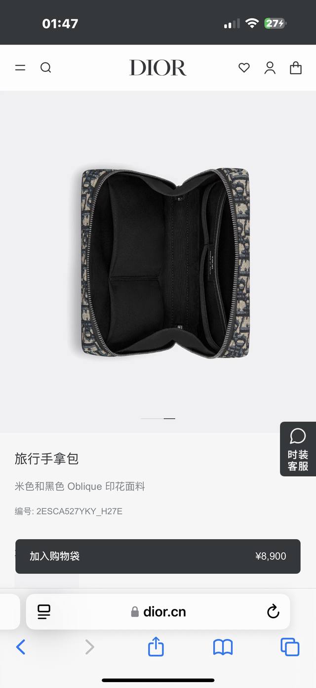 这款旅行手拿包实用又时尚。采用米色和黑色 Oblique 印花面料等材质精心制作,正面饰以 Dior 标志提升格调。缝有三角形衬料的设计,宽大的拉链隔层设有三个插袋和弹力带,便于收纳日常用品。可手拿或放入手袋中。