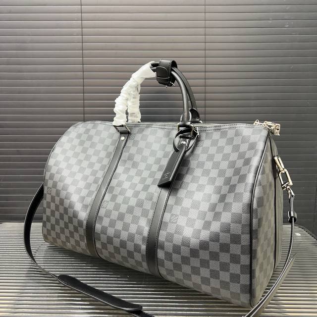 P200 Louisvuitton 路易威登 Keepall 旅行袋 单肩斜挎手提包袋 男女通用机场包 实物拍摄 原厂面料 规格 50 Cm。