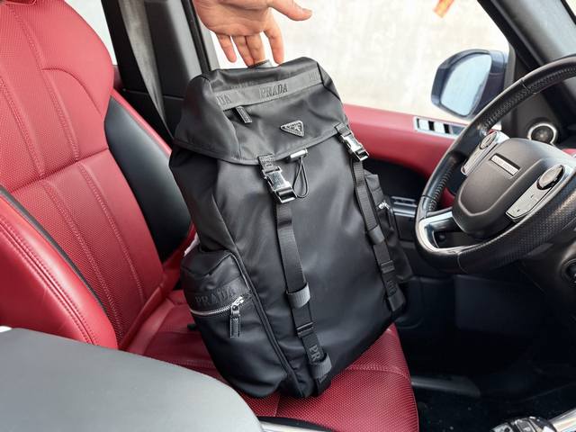P290 高端货 “ Prada ”普拉达双肩包 Prada普拉达 品牌Logo标志拉链开合 皮革尼龙 背包双肩包 男女同款情侣款 进口原厂防水布艺面料高清五金Logo标志 专用内里。顺滑拉链 油边平滑、做工精致每个细节到位!潮男必备款。规格:29X51X15Cm