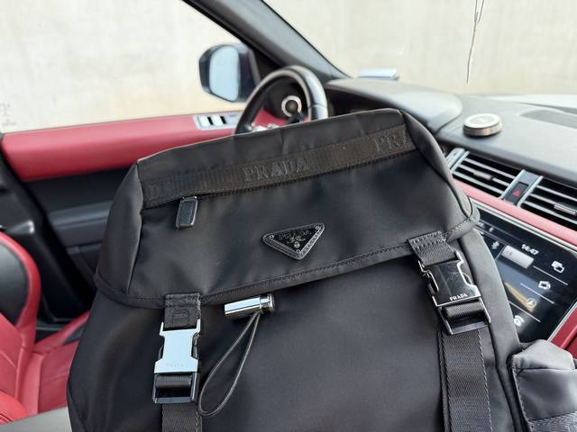 P290 高端货 “ Prada ”普拉达双肩包 Prada普拉达 品牌Logo标志拉链开合 皮革尼龙 背包双肩包 男女同款情侣款 进口原厂防水布艺面料高清五金