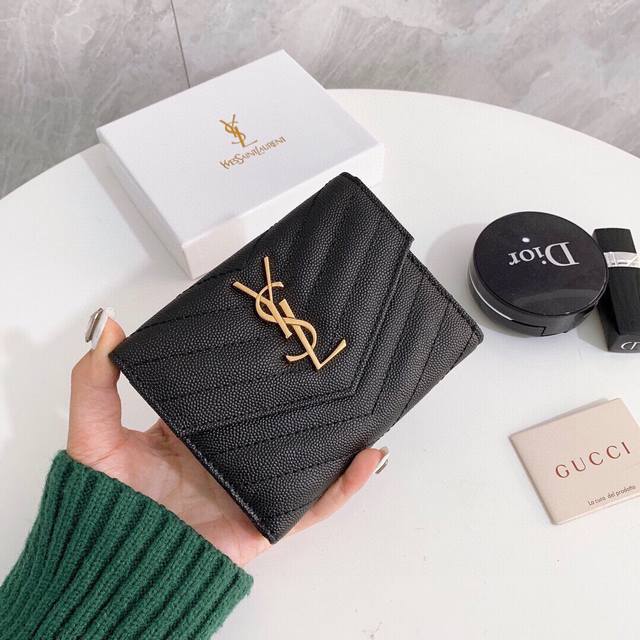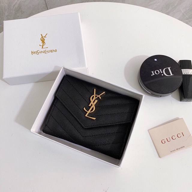 颜色 黑尺寸 11X10圣罗兰专柜同步时尚钱包,优质油蜡小牛皮内阁丰富,超级实用现货高品质