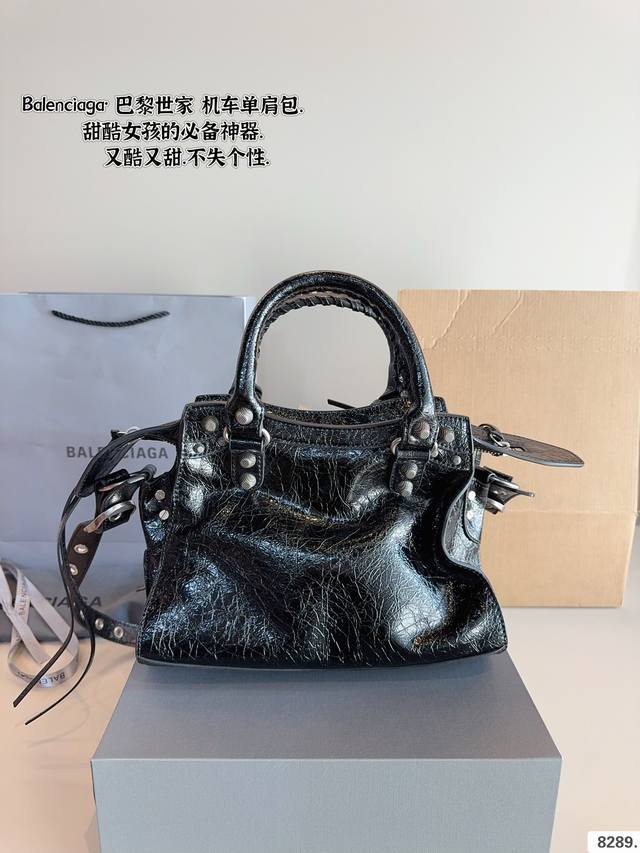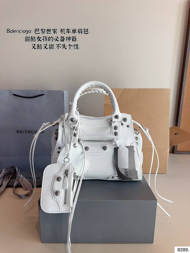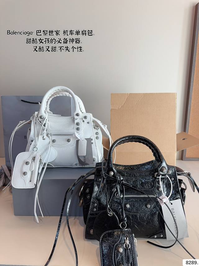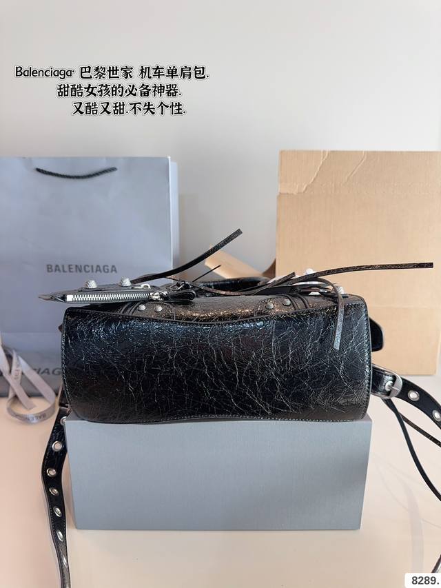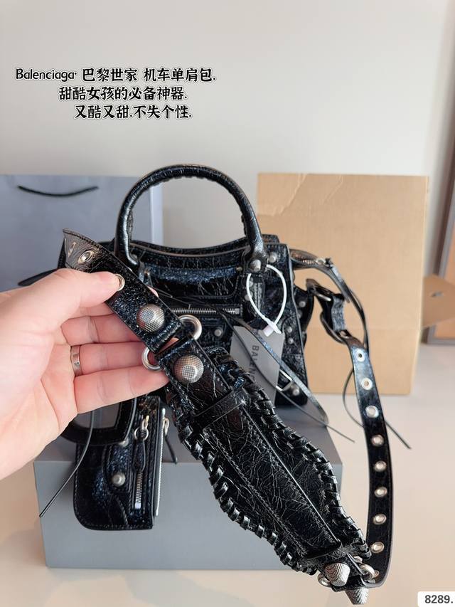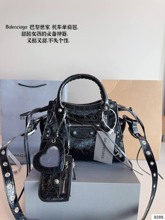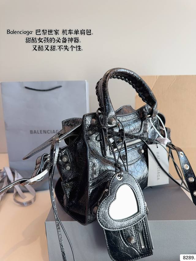 巴黎世家 Le Cagole机车包 配件和爱心镜子很加分有点小亚和朋克的感觉 容量足够肩带可以调节长度当腋下包和斜挎包都很不错上身就是甜酷辣妹即视感 尺寸:25*7*16Cm