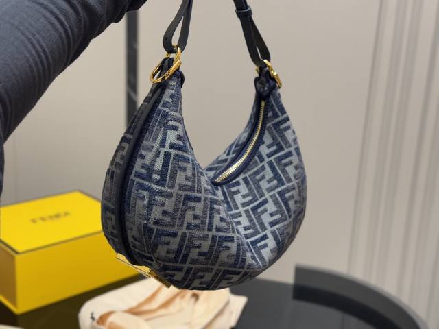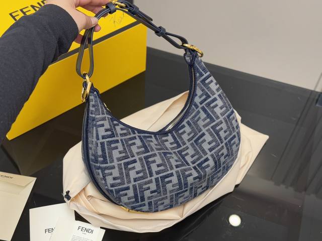 ¥ P270 配折叠盒 Size:28*16Cm 芬迪新款月亮牛角包 配肩带 腋下!