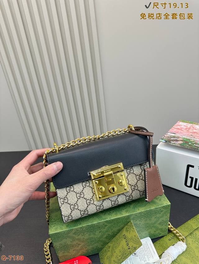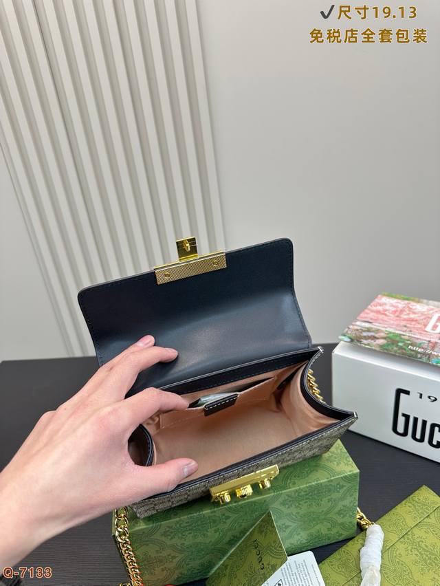 配盒子 Gucci酷奇padlock新款链条手袋 独家实拍,质感一流,可斜跨可单肩,多功能内格完美容纳 尺寸27.5 14货号811705
