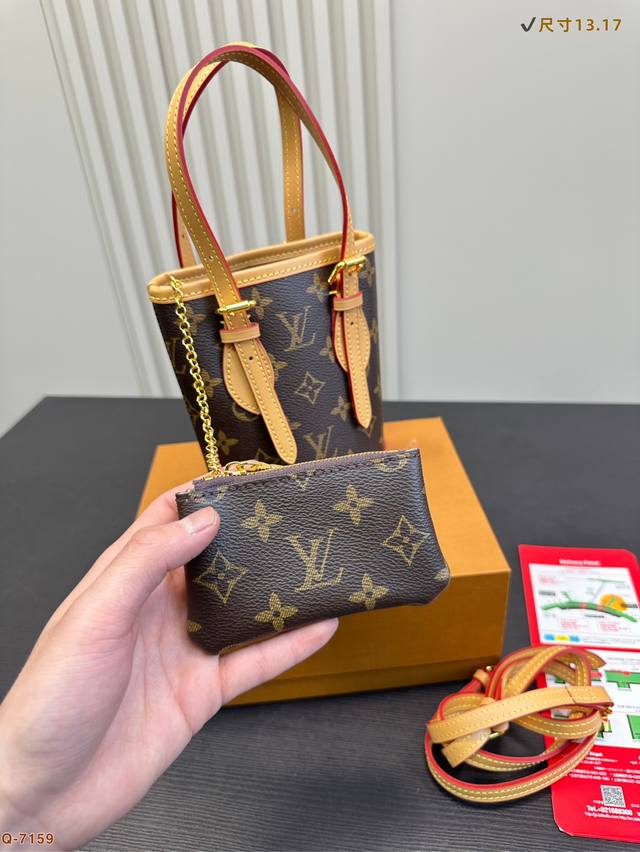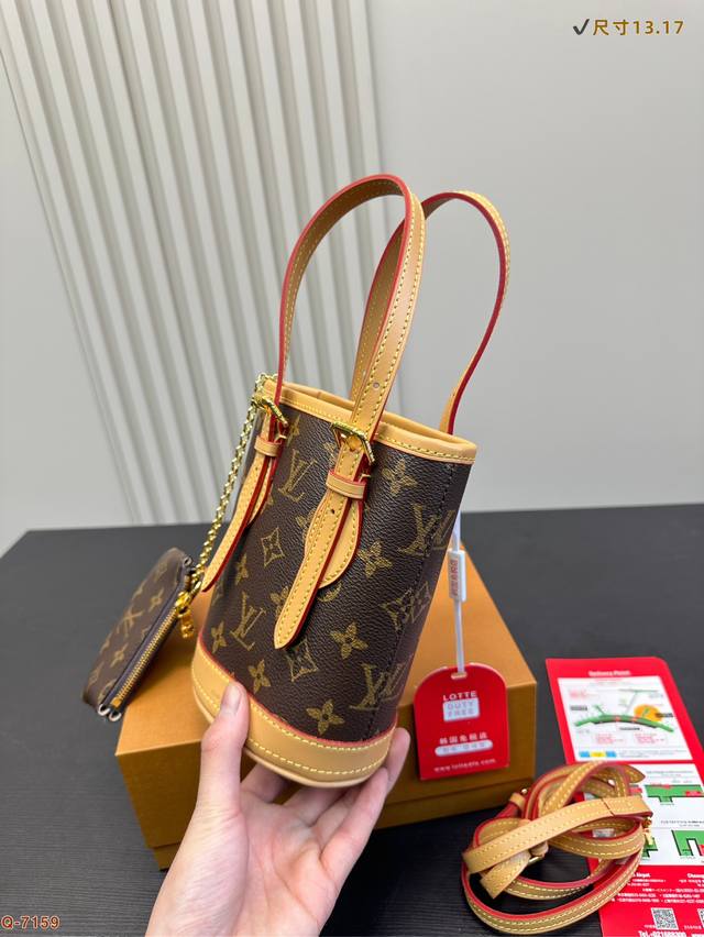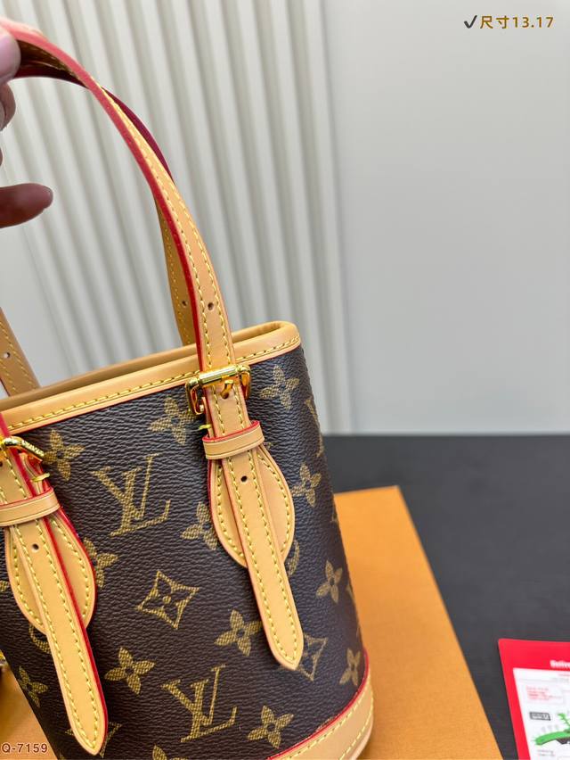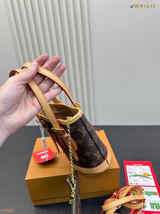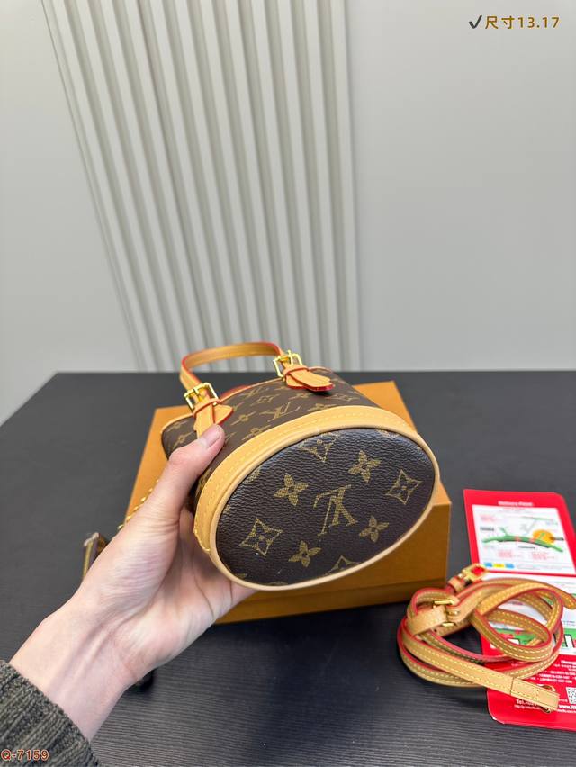 / P200配折叠盒 Size: 13.17Cm Lv新款小水桶上身效果很棒哦斜挎、单肩、手拎! 全钢五金 Noe水桶 新尺寸真的很Nice