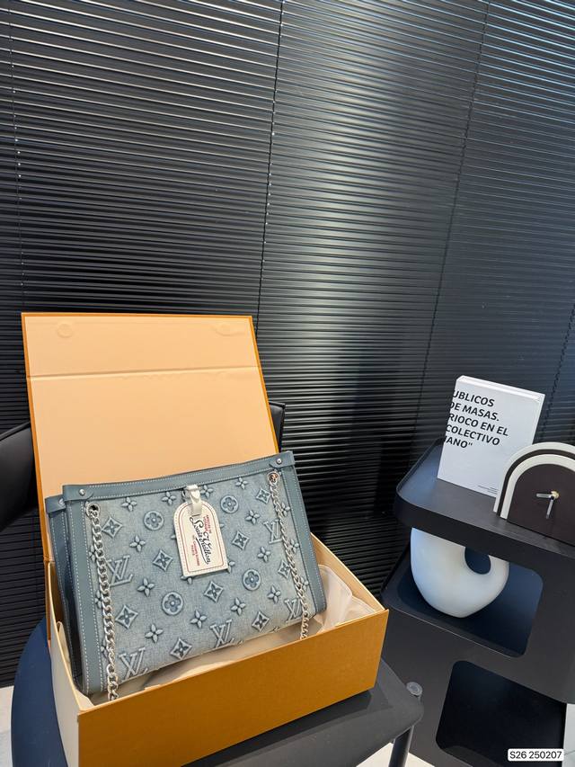 / P220 配飞机盒折叠盒子 Lv 牛仔托特线条简约,利落,包包上身大气,容量也是巨大,托特包都是无底洞~尺寸32 22 货号250207