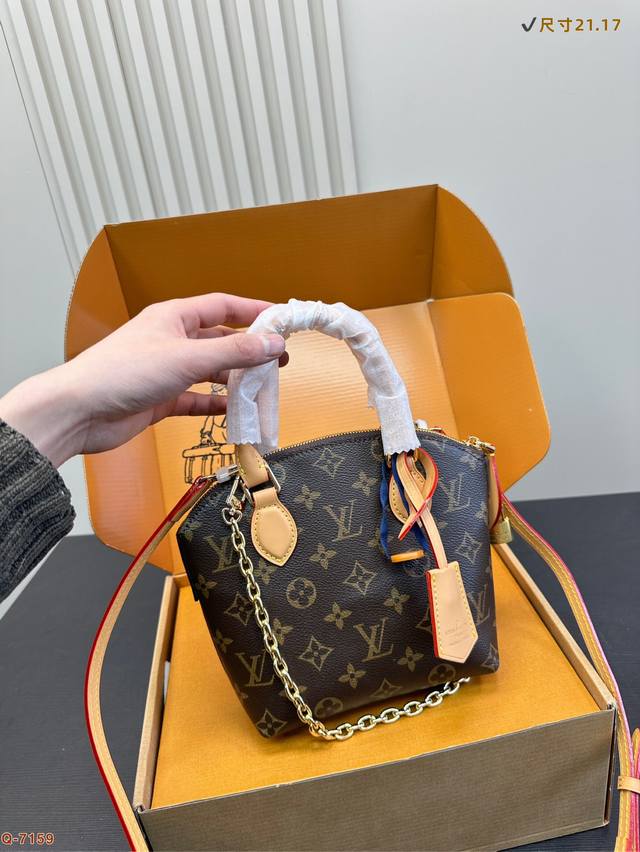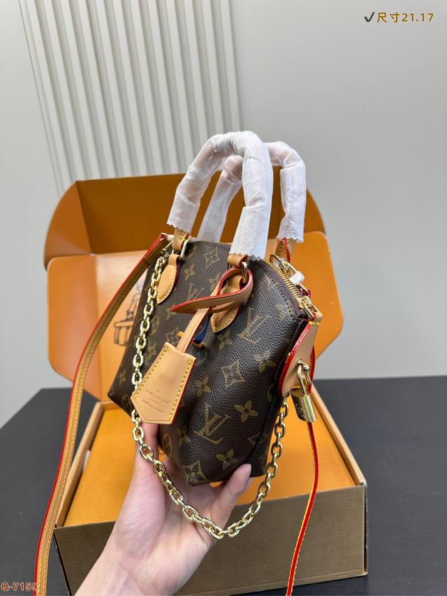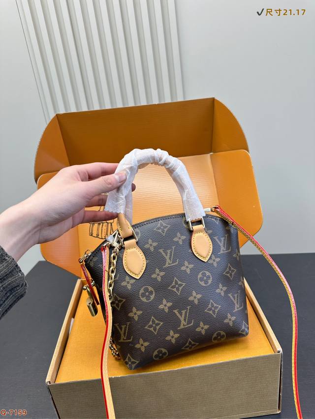 Lv秋冬新款Lockit Bb 手袋,从1960年代的Knick-Knack 手袋汲取灵感,可灵活切换多种背携方式。Monogram 涂层帆布搭配弧形上缘和椭圆饰边,道出原版设计的经典元素。挂锁开合再度致敬品牌悠久传承。