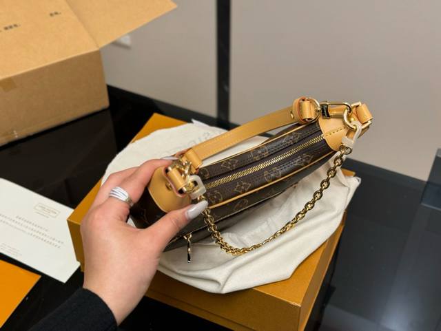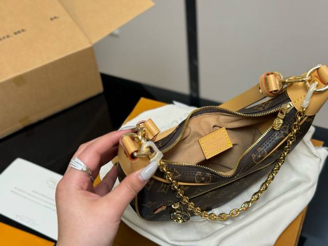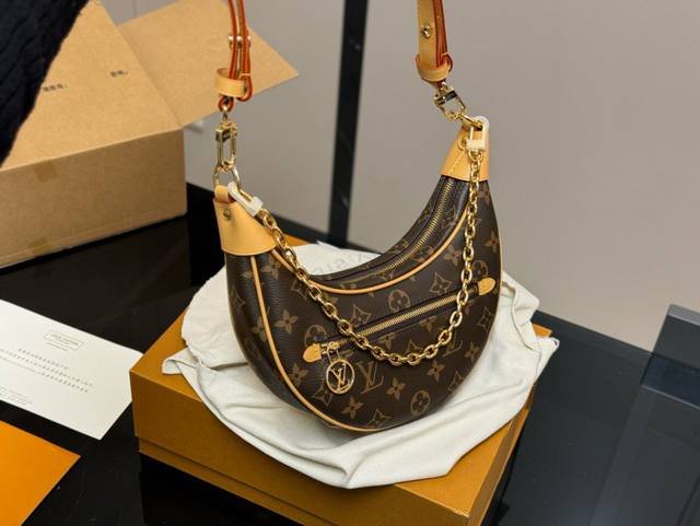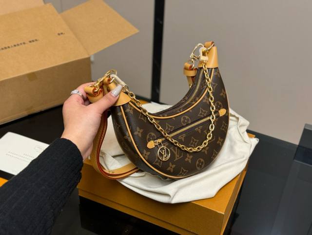 配飞机盒折叠盒子 Lv 牛角包中古款牛角包定制版经典单肩包配置肩带链条单肩斜挎都无敌好看百搭!超级时髦...