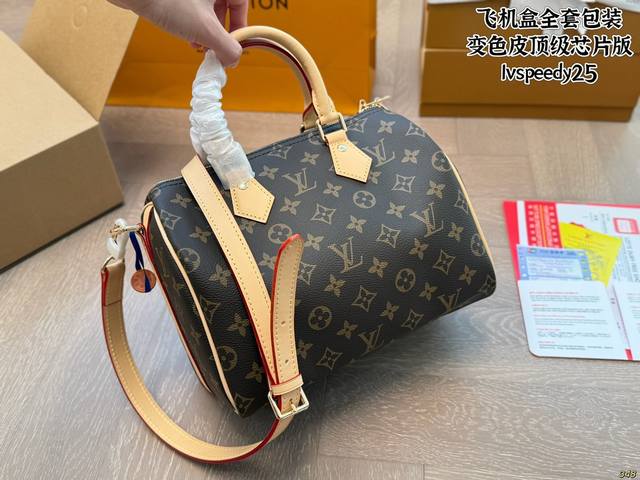 / P250飞机盒全套包装 变色皮顶级芯片版 Lvspeedy25经典系列 枕头包手袋,全网首发 经典永恒。优雅低调的外形设计和宽敞的包身更加入了实用性 尺寸25×