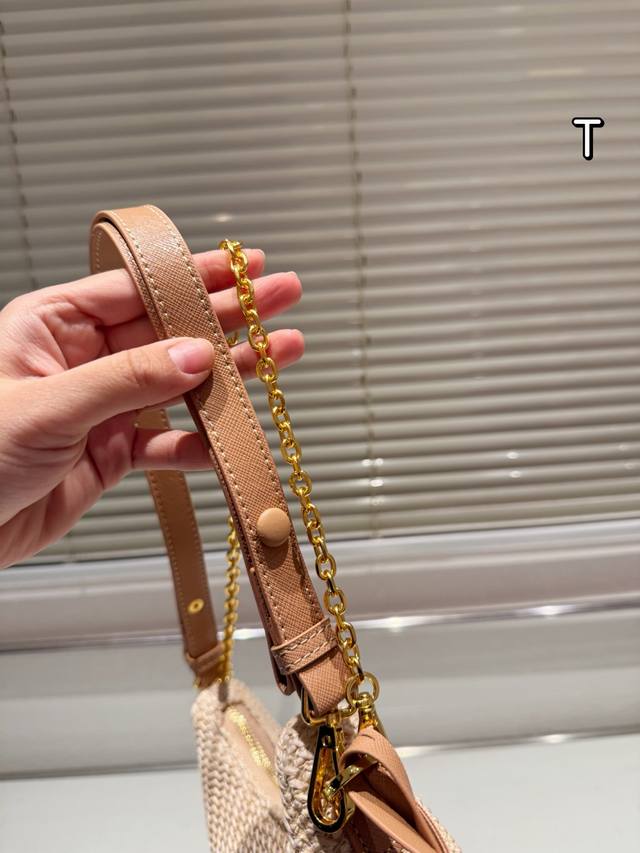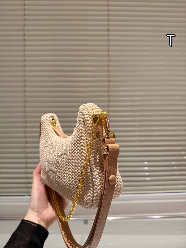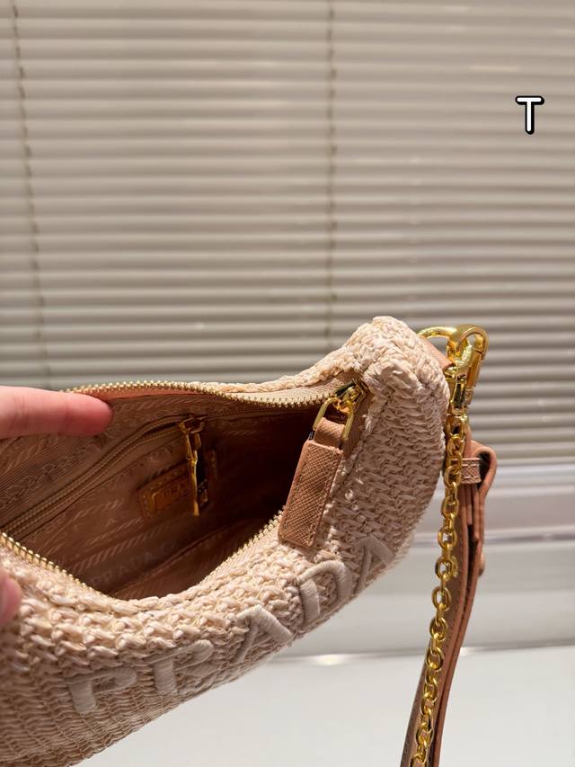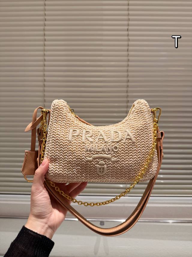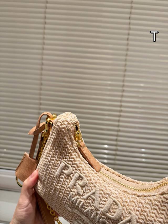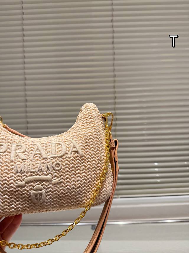 P150 配盒子 Size:23.13Cm Prada Hobo草编腋下包 看到实物真的堪称完美! 包装 设计超级方便和舒服!
