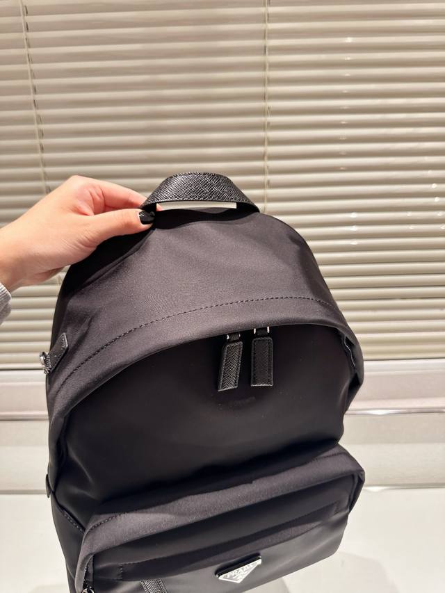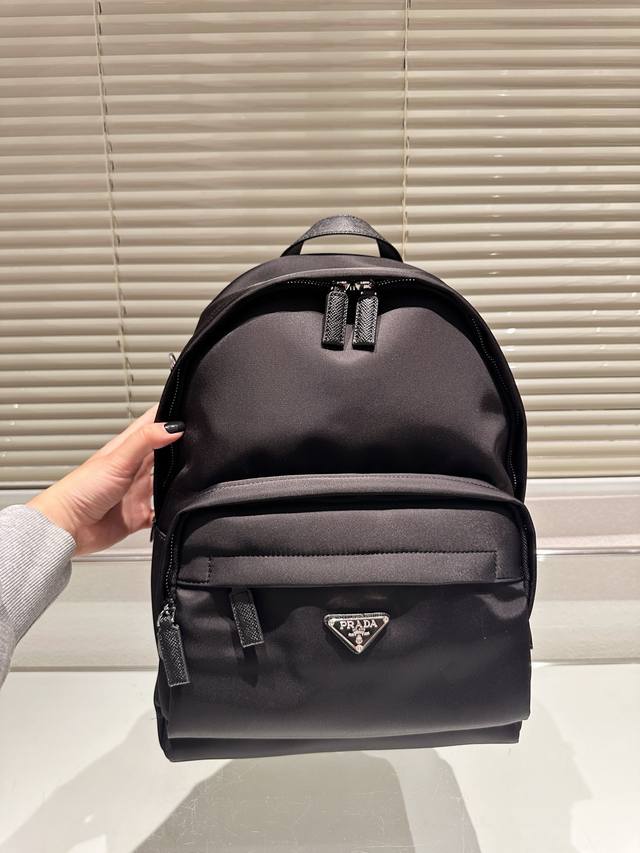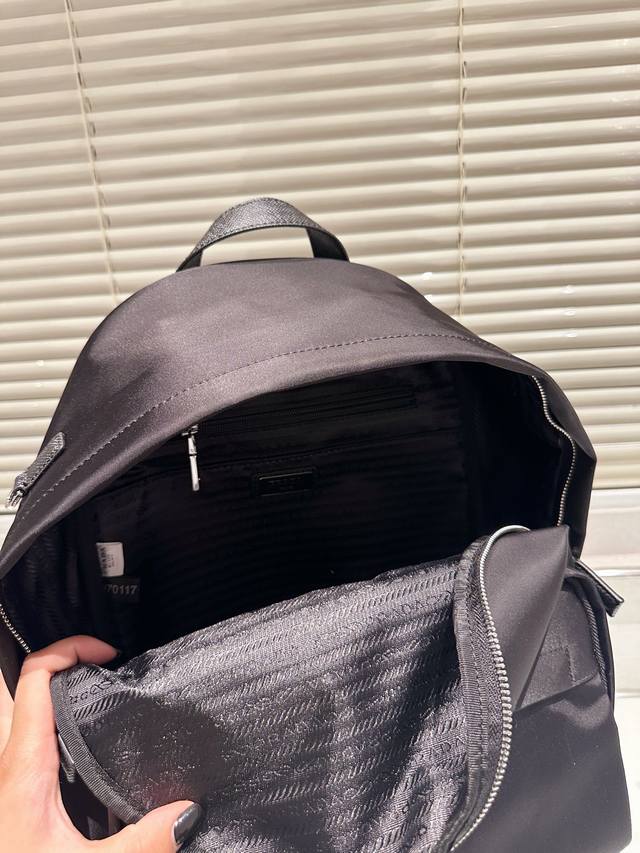 Prada洋气单品 双肩包 这个系列将是Prada接下来一整季的主打款式。Prada 手袋的曲线型设计分外醒目,当手包很优雅,时尚百搭!打麻将逛街也很轻便哦!尺寸 35 42Cm