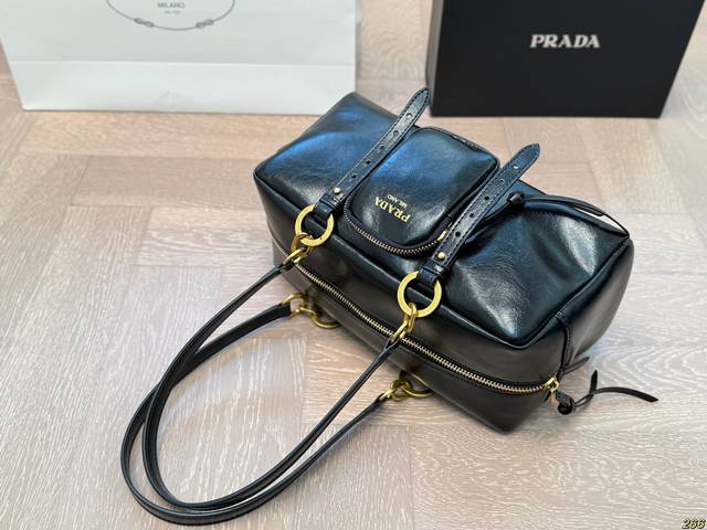 配礼盒. 普拉达Prada 新款 盒子包. 质感很高级 容量超级大也很耐用 日常出街背它回头率百分百 就是这种随性慵懒感尺寸:28*9*13Cm