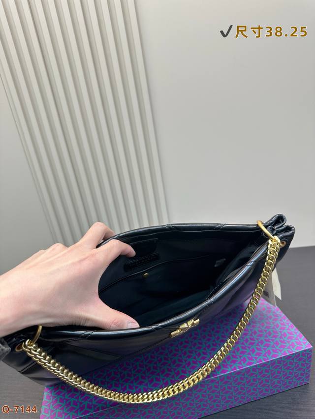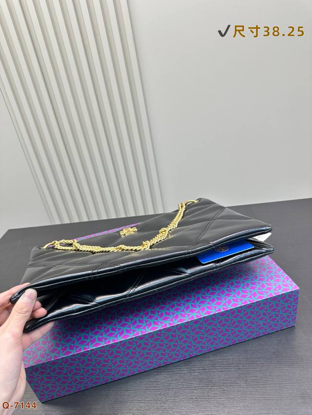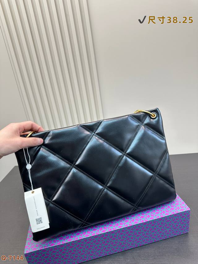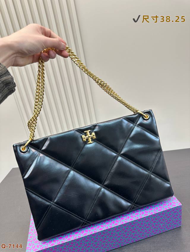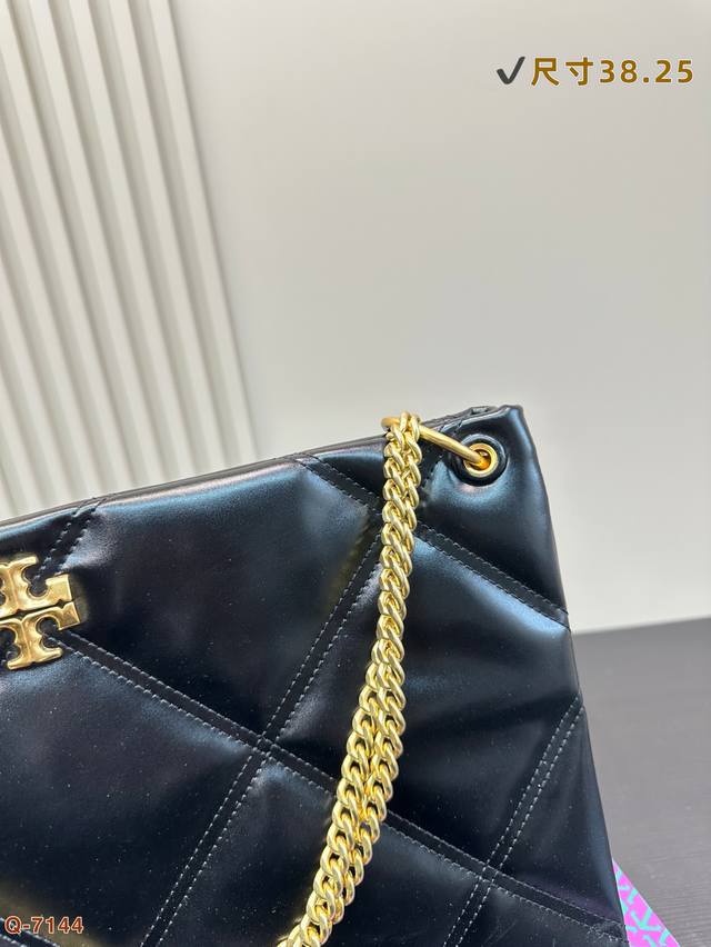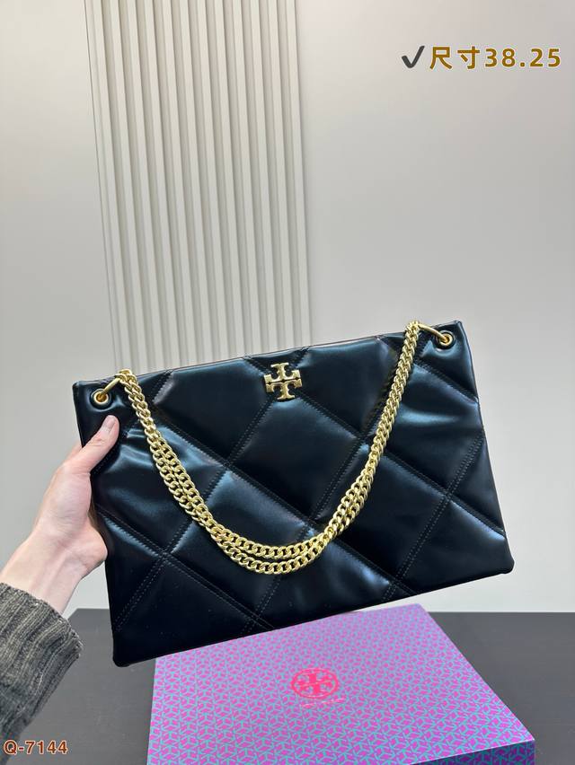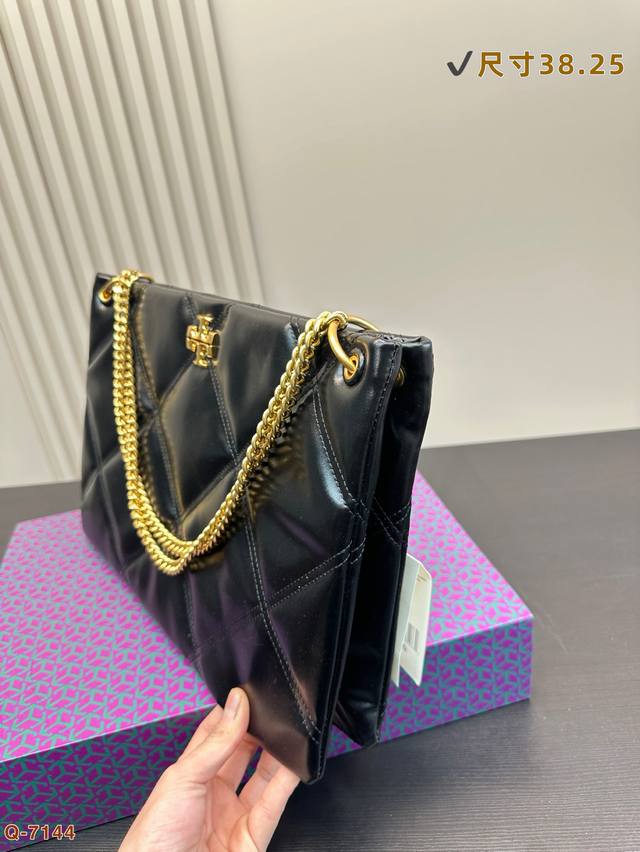 托里伯奇全新爆款购物袋 Kira 菱格绗缝手提托特包,材质柔软经久耐用,菱格形绗缝立体蓬松。柔软质感与立体剪裁,完美演绎经典廓形,搭配斜面双Tlogo饰件,更显时尚。可通过调节折叠链条带,双肩或斜挎。尺寸: