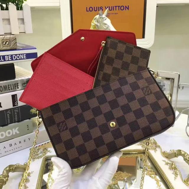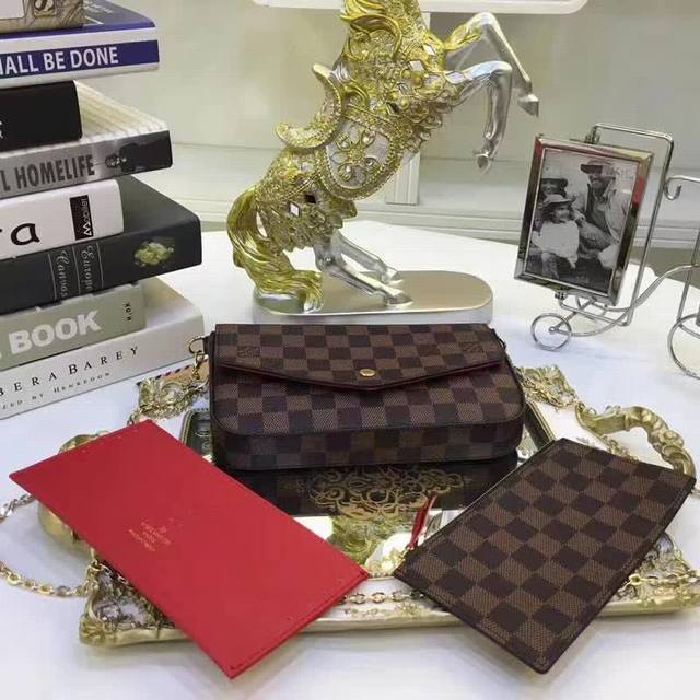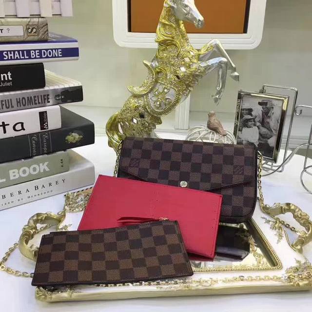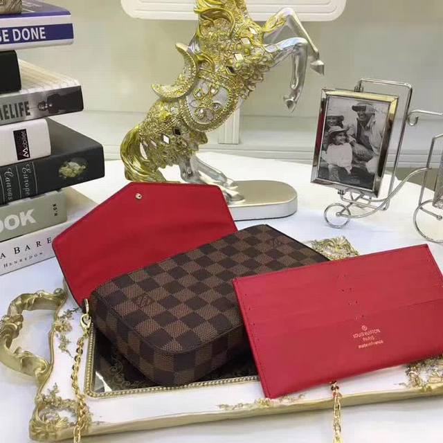 型号:61276 尺寸21/11/2介绍:Louis Vuittonfelicie三件套手袋优雅华贵,内含两个可脱卸口袋,是携带整理您的日常用品的时尚之选。它不仅仅是款钱夹,除去金色链条后,它还可以用作迷人的手包或小型手袋“”