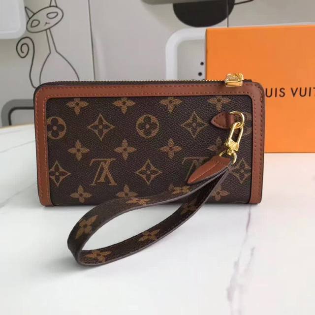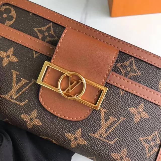 p110M69162 达芙妮钱包用“多菲”线的代码重新诠释图标的“吉比·多芬钱包”的“吉比·多菲”。将单克&单克反向帆布组合而成的钱包,用复古风格的扣子和光滑的