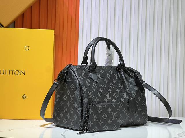 批220M24422 M24423 本款 Speedy BandoulièRe 30 Monogram Leather 手袋为柔软粒面牛皮革包裹羊皮革内衬,以丝印 Monogram 图案呈现帆布印花的迷离观感,道出创意总监 Pharrell Williams 的新季巧思。尺寸:30X25X20Cm