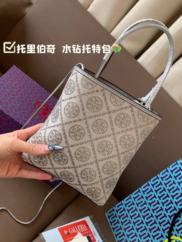 / p200 配礼盒. 托里伯奇 水钻托特包. 冬日限定款 采用印花纹与满钻面料拼接设计冬季氛围感十足 怎么搭都好看尺寸:16*18Cm