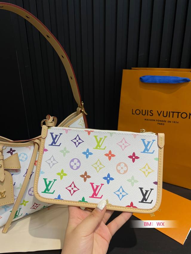 折叠盒 Size:27×19 Lv 路易威登新款村上隆白彩Carryall购物袋 带有蝴蝶结的腋下包,实用能装~...