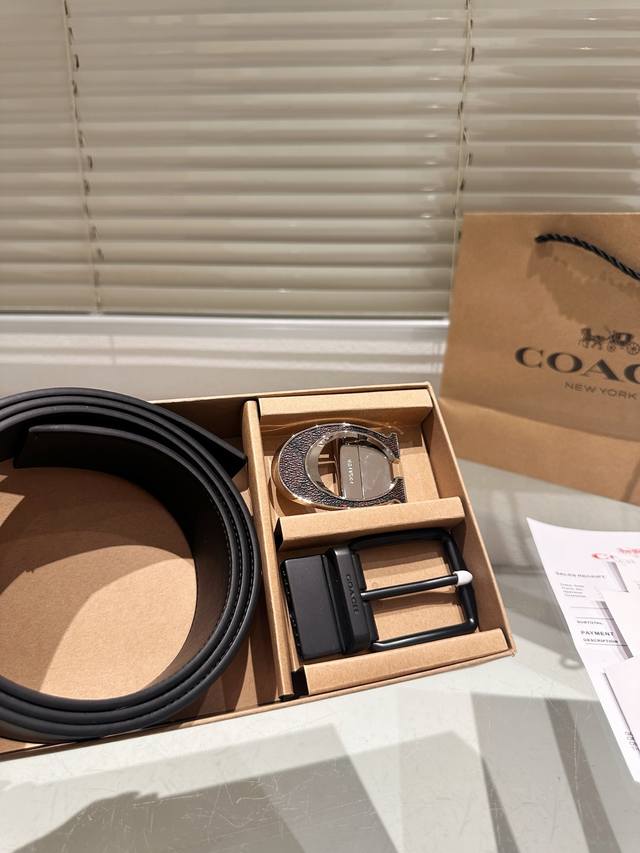 / 双头P120 高版本!腰带[嘿哈]Coach牛皮皮带~热门款 男女通用皮带里面最火的版本啦~质量很好 全套包装!五金绝对不褪色 皮带头和专柜一样的哦~ 配礼盒手