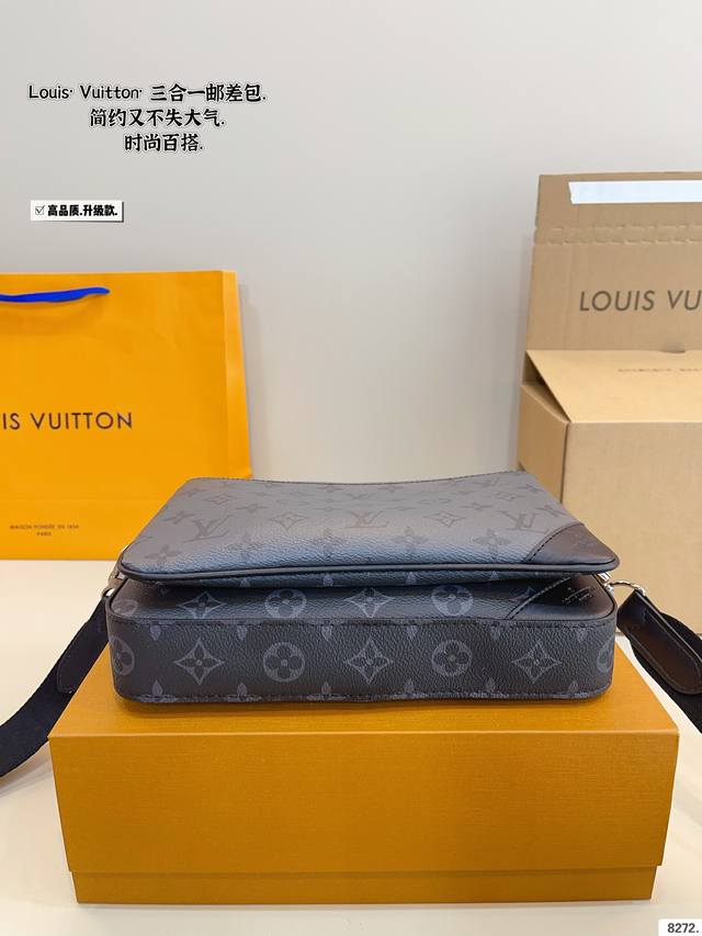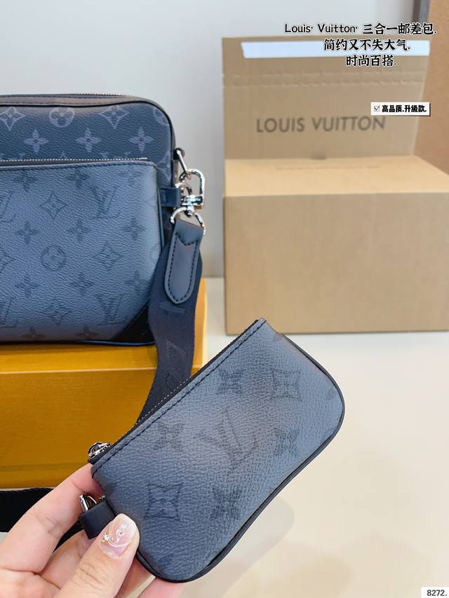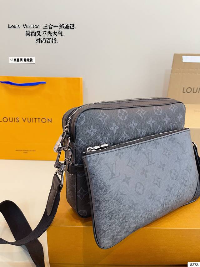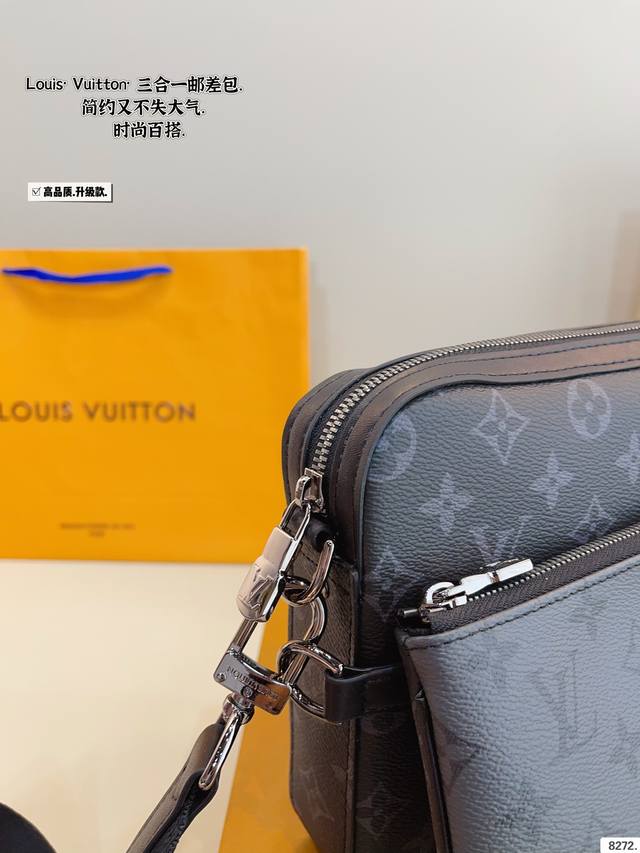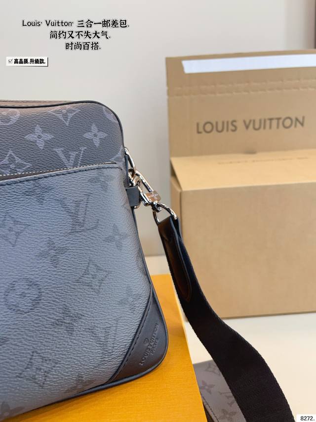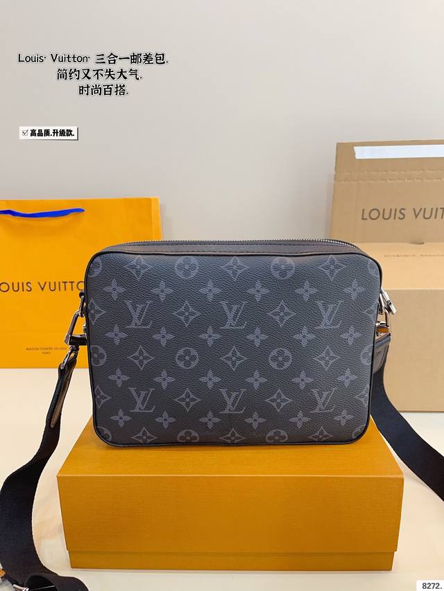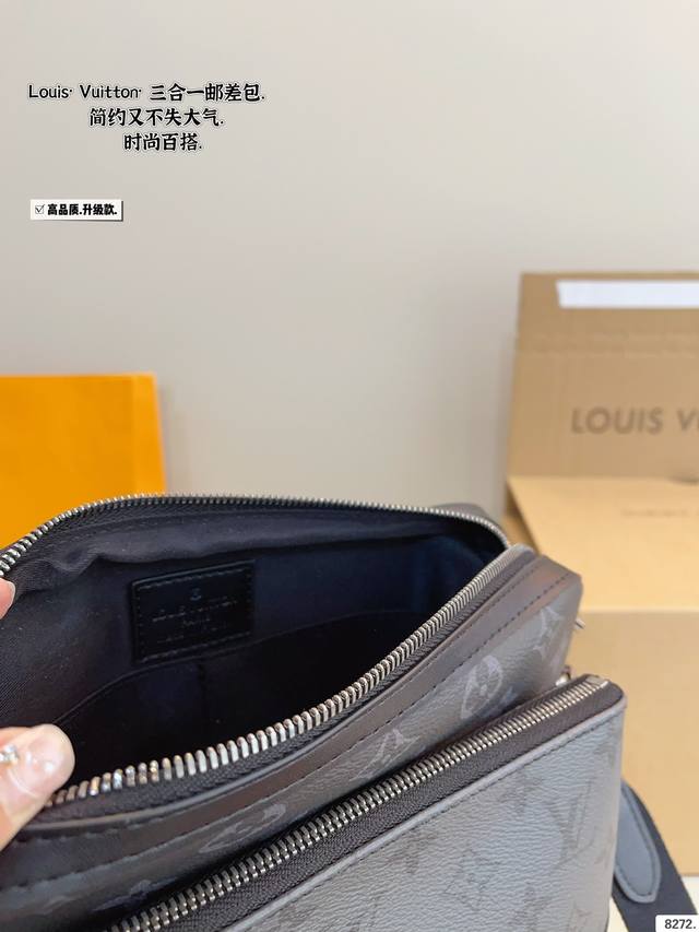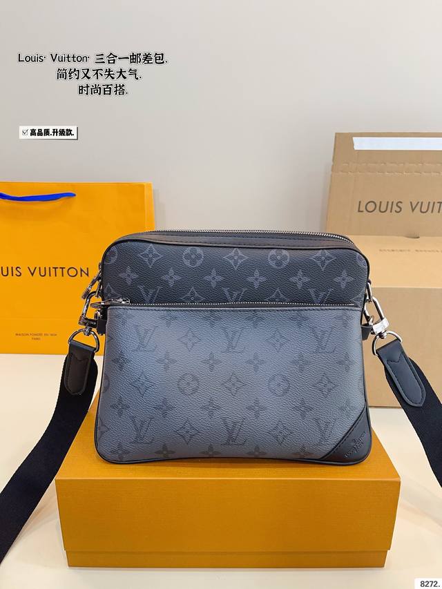 p190 配礼盒 lv 三合一邮差包 男生日常休闲搭配的理想选择~ 实用又百搭,小小的身体大大的空间 非常适合放随身物品~ 面料耐磨耐刮蹭,适合男生大大咧咧的性
