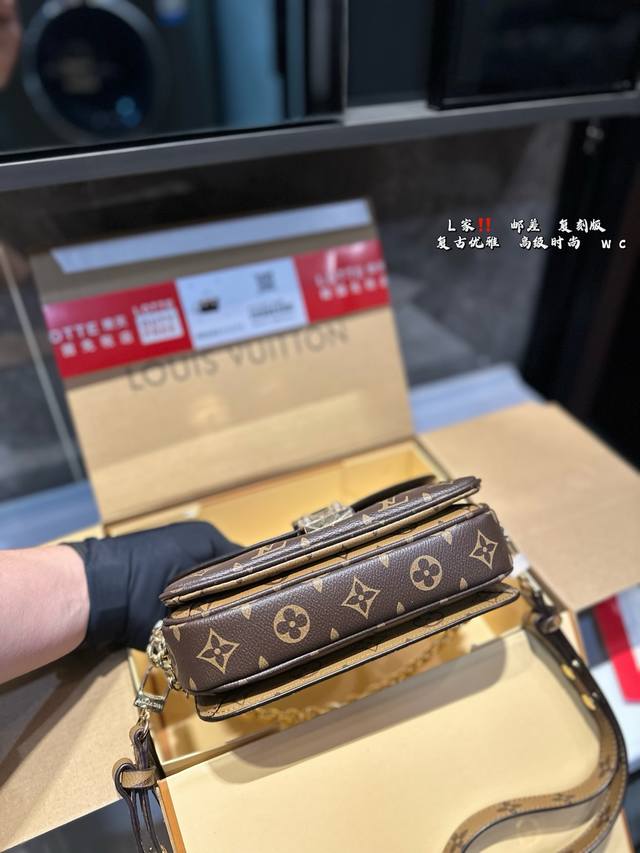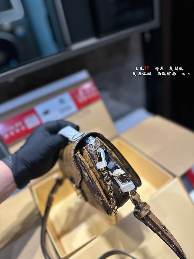 lv邮差包老花手提单肩斜挎包,优雅低调的外形设计和宽敞的包身更加入了实用性,Lv闪亮的纯钢金色五金配件- 可调节肩带,配有树糕皮的肩垫,拉链闭合 超细纤维内衬 尺寸 21 14Cm