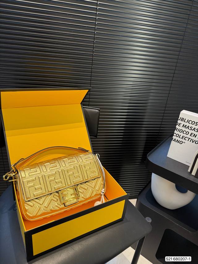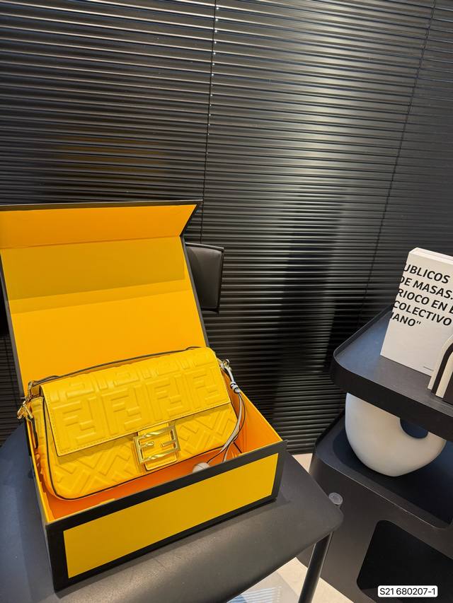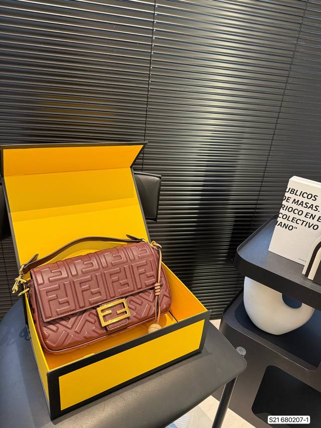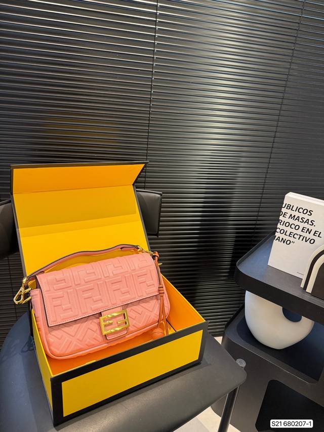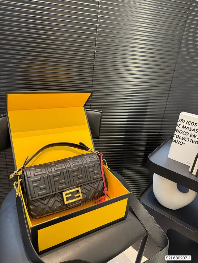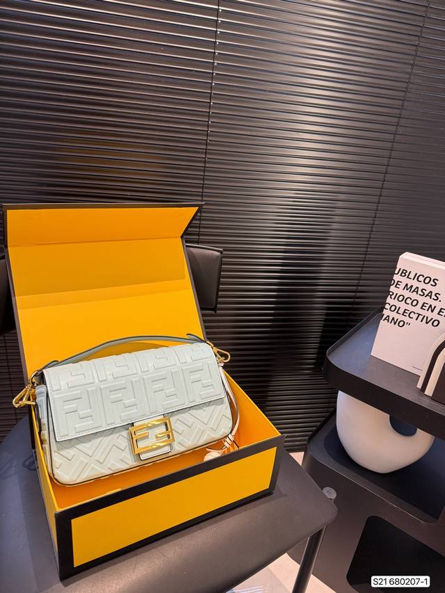 fendi Baguette芬迪法棍包第一眼就觉得砸中了我。加上中号有一根较长的肩带,非常实用。装两个手机,钱包,钥匙,墨镜,口红,粉饼都毫无压力。看起来虽然不算太大但是绝对很能装。尺寸27 16 货号680207-1